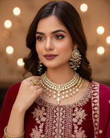 Pick a velvet shawl with a zari border to keep your shoulders warm while still looking royal. Add a neat belt to hold your dupattas in place, shape your waist, and support your posture so you do not keep adjusting fabric all evening.