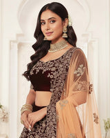 - Pear shape (heavier at hips): A-line lehenga in velvet or silk with work near the hem and blouse. This pulls focus up and gives clean length.